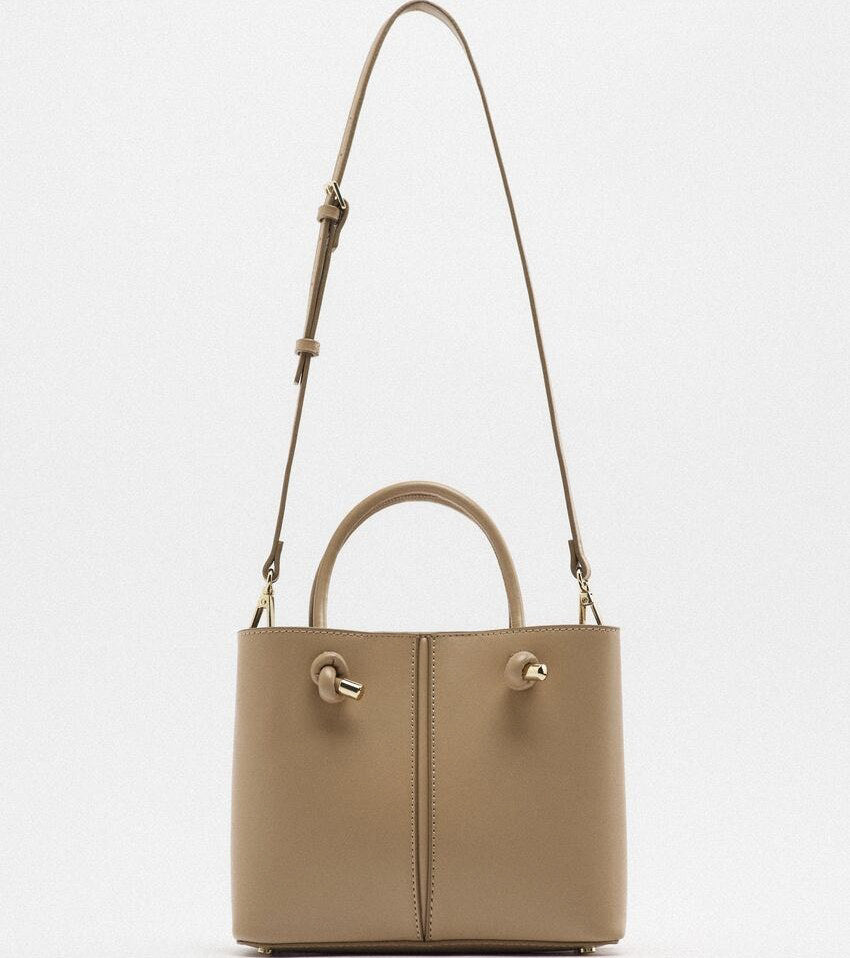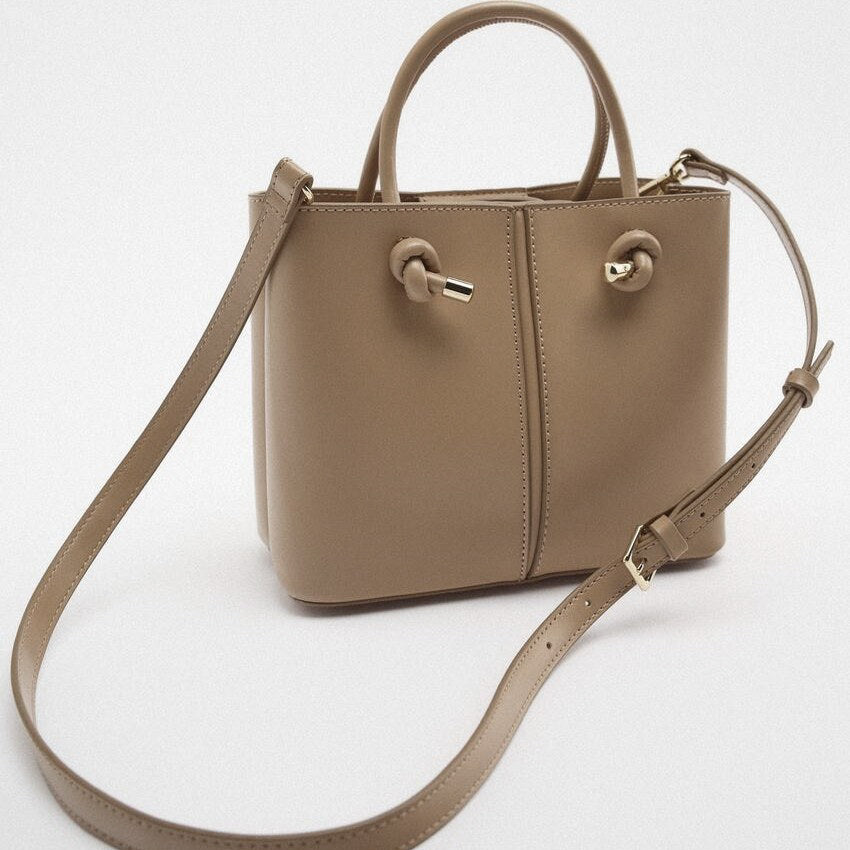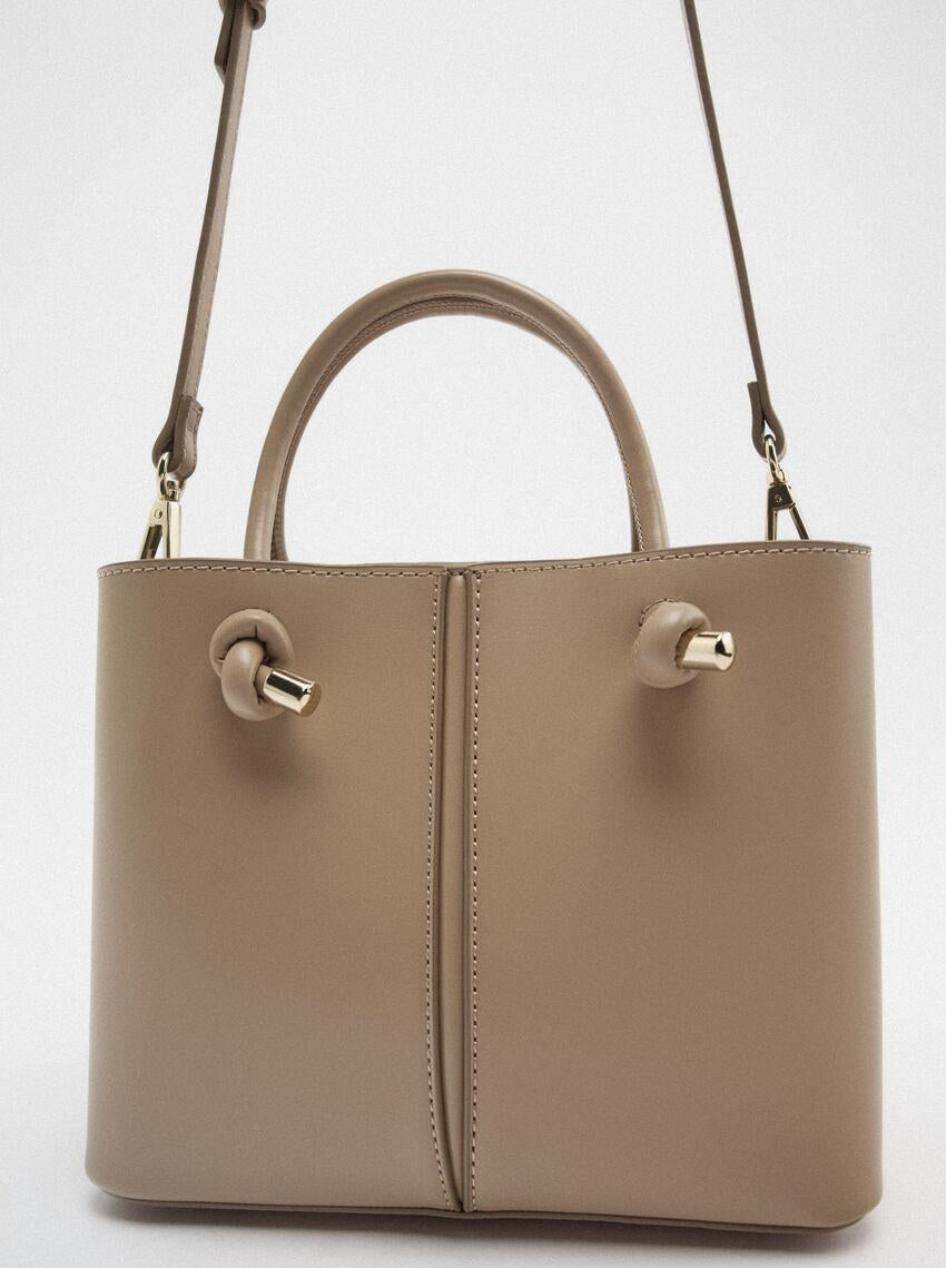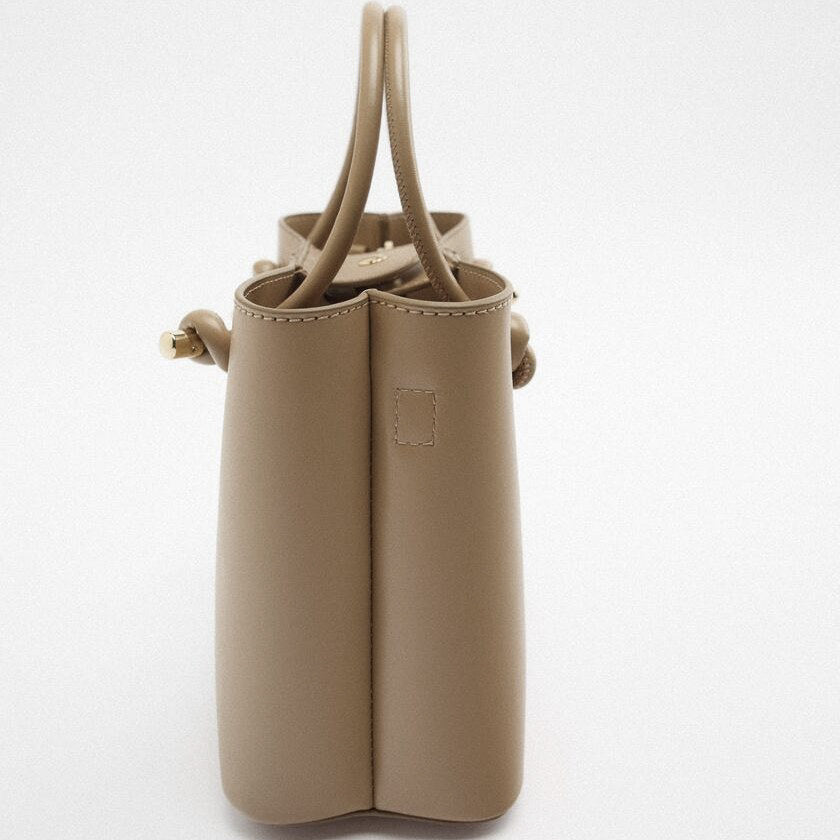 Compact city bag with two  compartments and magnetic clasp closure. Inside pocket with zip closure. Tubular handles and adjustable and detachable crossbody strap. Available in black brown , white , burgundy , beige and olive green.